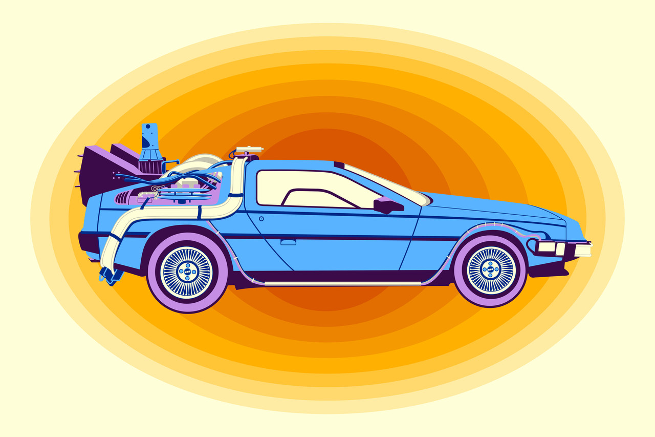Here we have Variant 2 of "88 MPH." The car pops nicely against the background, a sun-like disc radiating in my signature color gradient banding from deep, bold orange to yellow to cream in a unique sort of Mod Pop Art-style oval vignette ... and I dig how it turned out. I may just have to use this style more in future works!